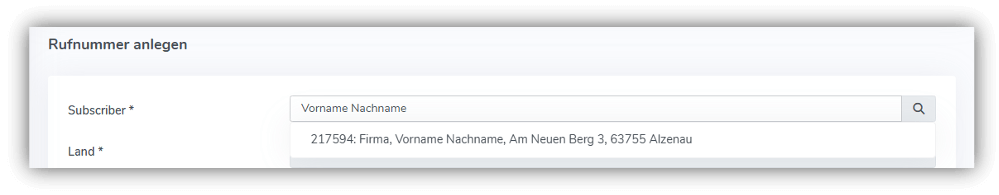 Die Subscriber-Suche unterstützt jetzt die gleichzeitige Suche nach Vor- und Nachnamen. Das hilft überall dort, wo man schnell den passenden Subscriber benötigt – z. B. beim Rufnummern bestellen oder beim Anlegen einer Portierung. Gerade für Kunden, die regelmäßig mit dem Portal arbeiten, ist das eine deutliche Verbesserung.